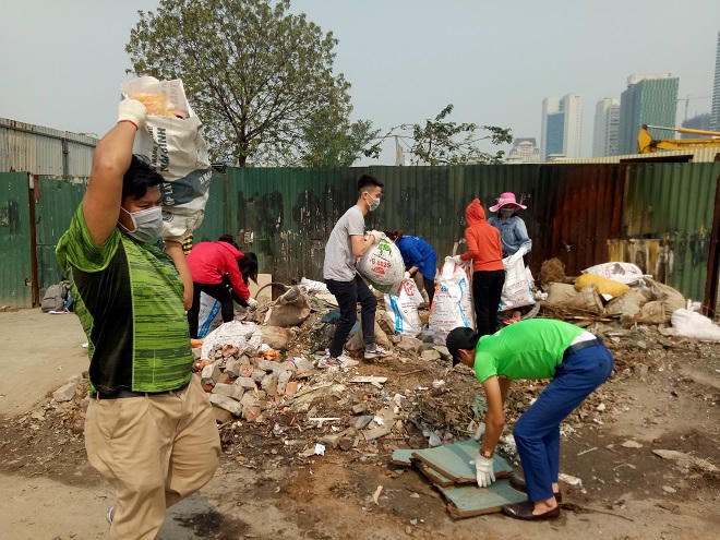 Dù có bốc mùi hôi thối hay phải khênh vác nhiều vật nặng, các bạn trẻ vẫn quyết tâm “diệt trừ” mọi đống rác