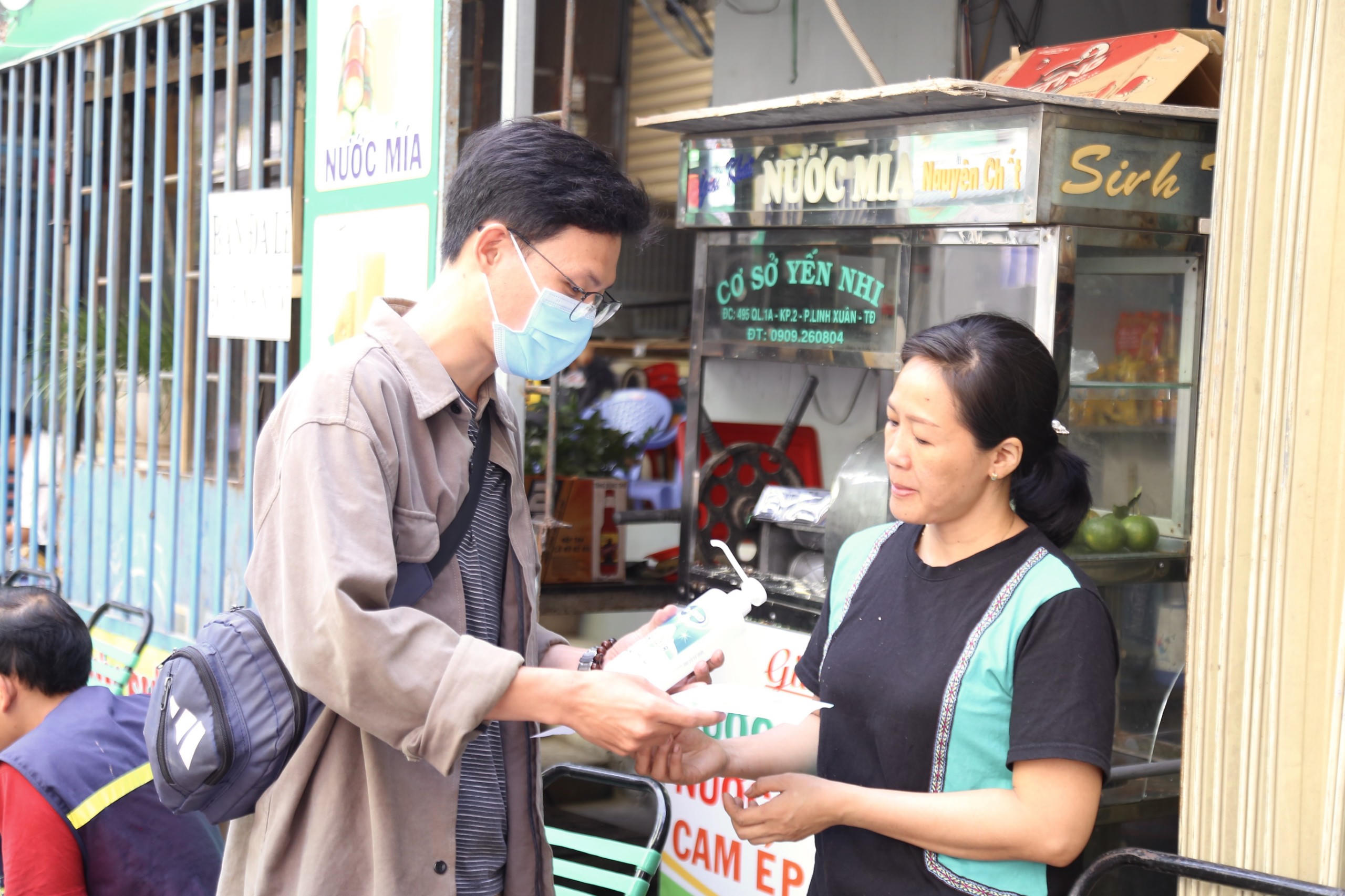 Sinh viên tình nguyện tặng khẩu trang miễn phí cho người dân