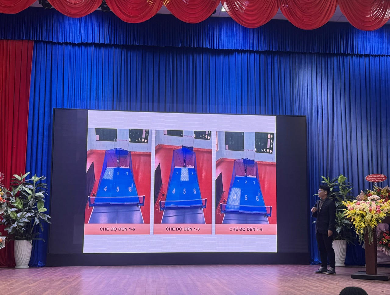 Dưới sự hướng dẫn, chỉ đạo của Thạc sỹ Trần Thị Hồng Việt, phó trưởng khoa HLTT đã tham gia cuộc thi với đề tài: “Nghiên cứu sáng chế phương tiện bổ trợ “Đèn Ledping” nhằm nâng cao năng lực biến hóa điểm rơi khi đánh bóng cho sinh viên chuyên ngành Bóng Bàn, Ngành Huấn Luyện Thể Thao, Trường Đại học TDTT Bắc Ninh”. Đề tài này đã sáng chế được phương tiện bổ trợ Đèn LEDPING gồm 4 chi tiết chính và các phụ kiện đi kèm, đồng thời xây dựng được 16 bài tập ứng dụng trên phương tiện này. Kết quả nghiên cứu cho thấy thiết bị Đèn LEDPING do đề tài sáng chế và các bài tập được xây dựng đã có tác dụng nâng cao năng lực điều chỉnh điểm rơi khi đánh bóng cho sinh viên chuyên ngành Bóng Bàn, ngành Huấn Luyện Thể Thao, Trường Đại học TDTT Bắc Ninh