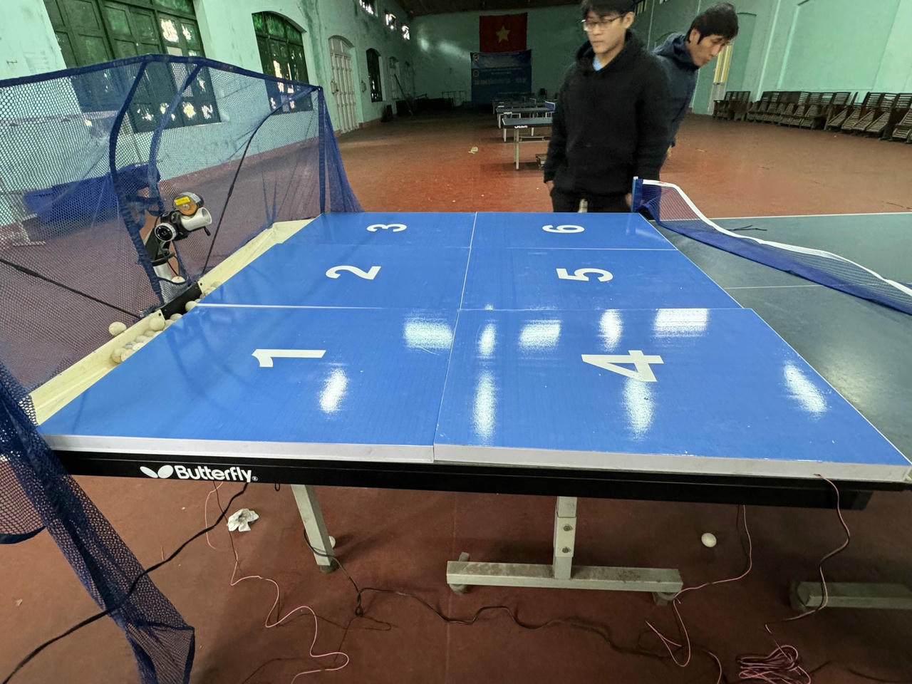Nhóm nghiên cứu đang thí nghiệm đề tài tại Nhà tập Bóng bàn, Trường Đại học TDTT Bắc Ninh. |