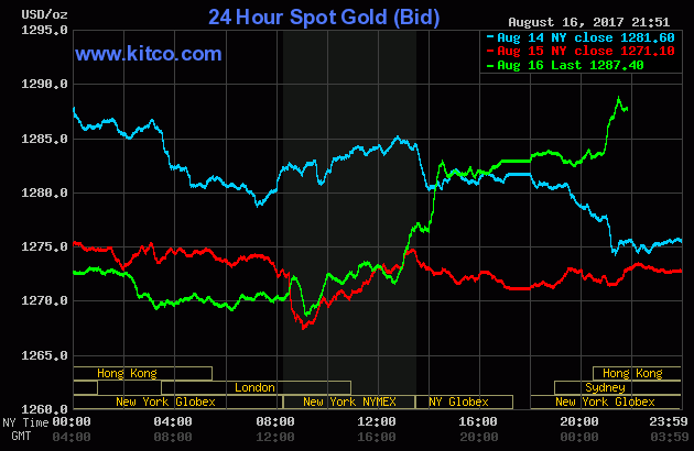 Giá vàng thế giới đêm qua chùng lại đầu phiên sau khi căng thẳng Mỹ - Triều Tiên lắng dịu và đồng USD tăng khá nhanh. Tuy nhiên, mặt hàng này đe dọa tăng mạnh trở lại do tình hình bất ổn trên chính trường nước Mỹ và những toan tính mới của Fed.