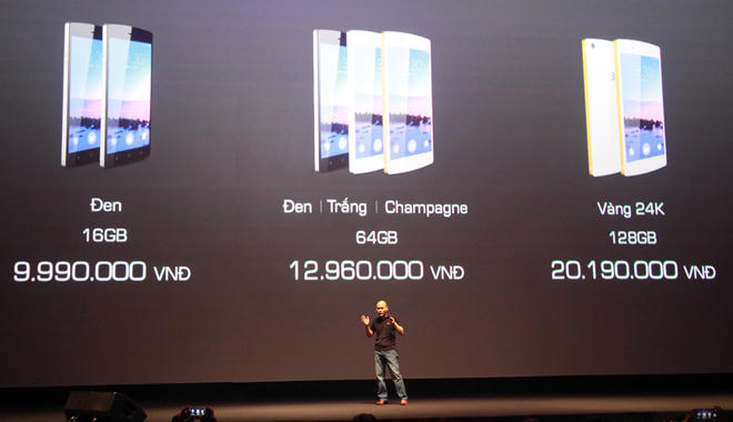 (PLO) - BPhone có 3 phiên bản bộ nhớ là 16GB - 64GB - 128GB với 4 màu trắng - đen - vàng và đặc biệt là vàng 24K. Giá bán chính thức của BPhone là 9,9 triệu đồng cho phiên bản cấu hình thấp nhất.
