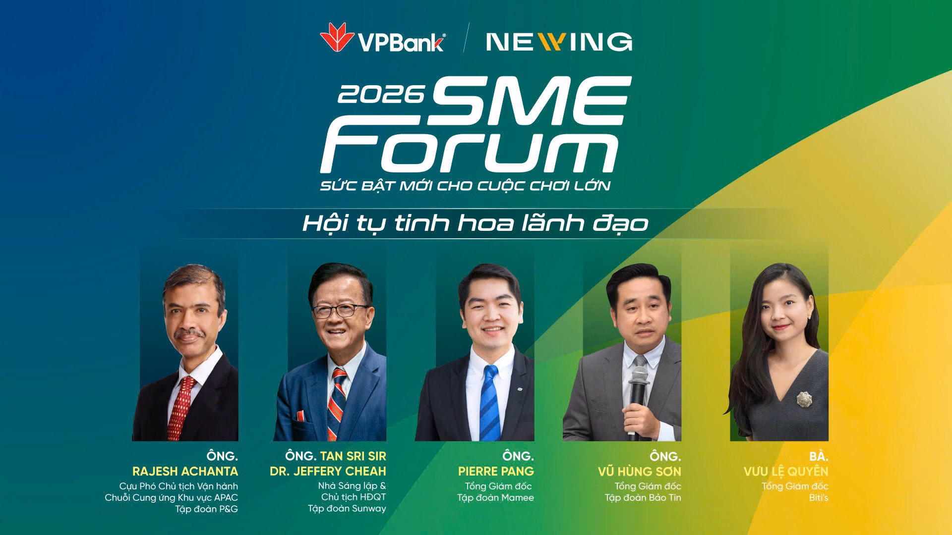 SME Forum 2026 quy tụ nhiều diễn giả uy tín trong khu vực, mang đến những câu chuyện thực tế về chiến lược phát triển doanh nghiệp, quản trị vận hành và mở rộng thị trường. Sự hiện diện của những chuyên gia tầm cỡ là minh chứng cho nỗ lực của ngân hàng trong việc mang tinh hoa quản trị trong và ngoài nước, về "gõ cửa" từng doanh nghiệp Việt.
