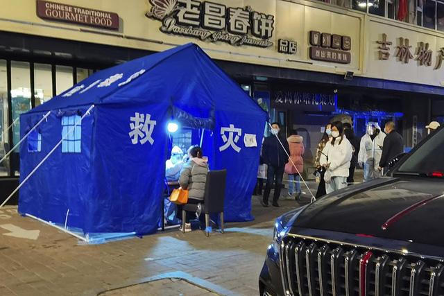 Người dân xếp hàng xét nghiệm COVID-19 ở Trường Xuân, thuộc tỉnh Cát Lâm, Đông Bắc Trung Quốc, ngày 11/3/2022. (Ảnh: AP)