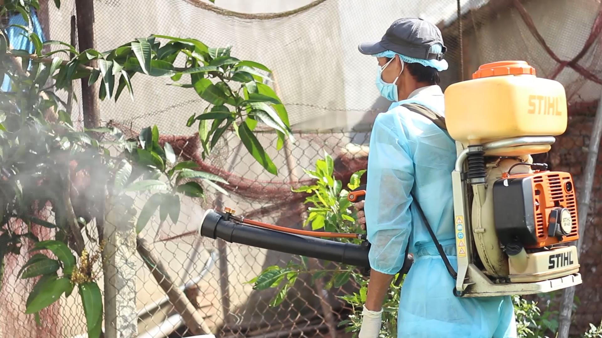 Phun thuốc khử trùng để phòng ngừa bệnh sốt xuất huyết. |