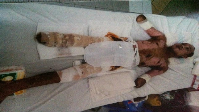 Thấy cảnh chồng băng bó khắp người, cơ thể bị cưa nhiều lần, người vợ tật nguyền đau đớn cùng cực. Chị sụt sùi: “Nếu tôi gánh được một phần nỗi đau đó cho chồng thì tôi cũng tình nguyện. Mỗi lần thay băng, thấy người anh mọc da non đỏ hỏn như miếng thịt bò, tim tôi đau nhói. Tôi chỉ dám đứng ngoài cửa nhìn vào, rồi khóc ngất lên ngất xuống, mấy cô y tá phải chuyển tôi tới phòng khác. Trước mặt chồng, tôi lại phải cố vui vẻ, nói chọc cho anh vui; chứ nếu tôi khóc là anh lại khóc theo. Anh cứ than thở: “Vợ chồng mình bao nhiêu năm nay làm phước, giúp đỡ bao nhiêu người. Thế mà tai họa sao cứ giáng xuống đầu mình. Mong sao họa này qua nhanh”.