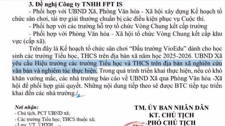 Để kịp thời chấn chỉnh, Sở GD&ĐT Hà Nội đề nghị UBND các xã, phường cùng các trường trực thuộc: Tổ chức rà soát, kiểm tra việc triển khai Cuộc thi “Đấu trường VioEdu” tại các trường học trên địa bàn; Xử lý nghiêm minh các trường hợp thực hiện không đúng quy định theo như phản ánh của báo chí (nếu có);