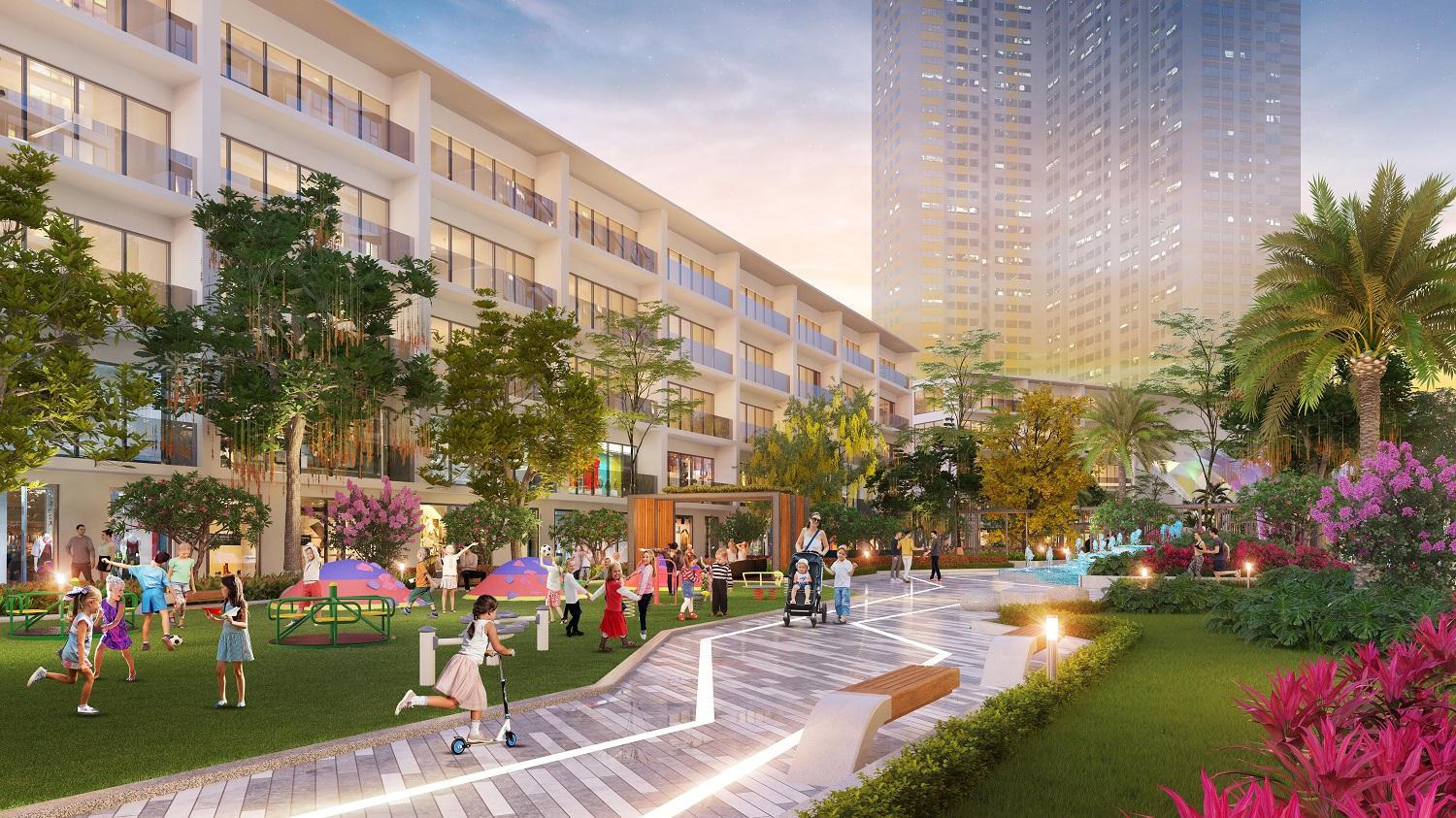 Khu vui chơi trẻ em được phủ xanh bởi nhiều loài cây bóng mát |