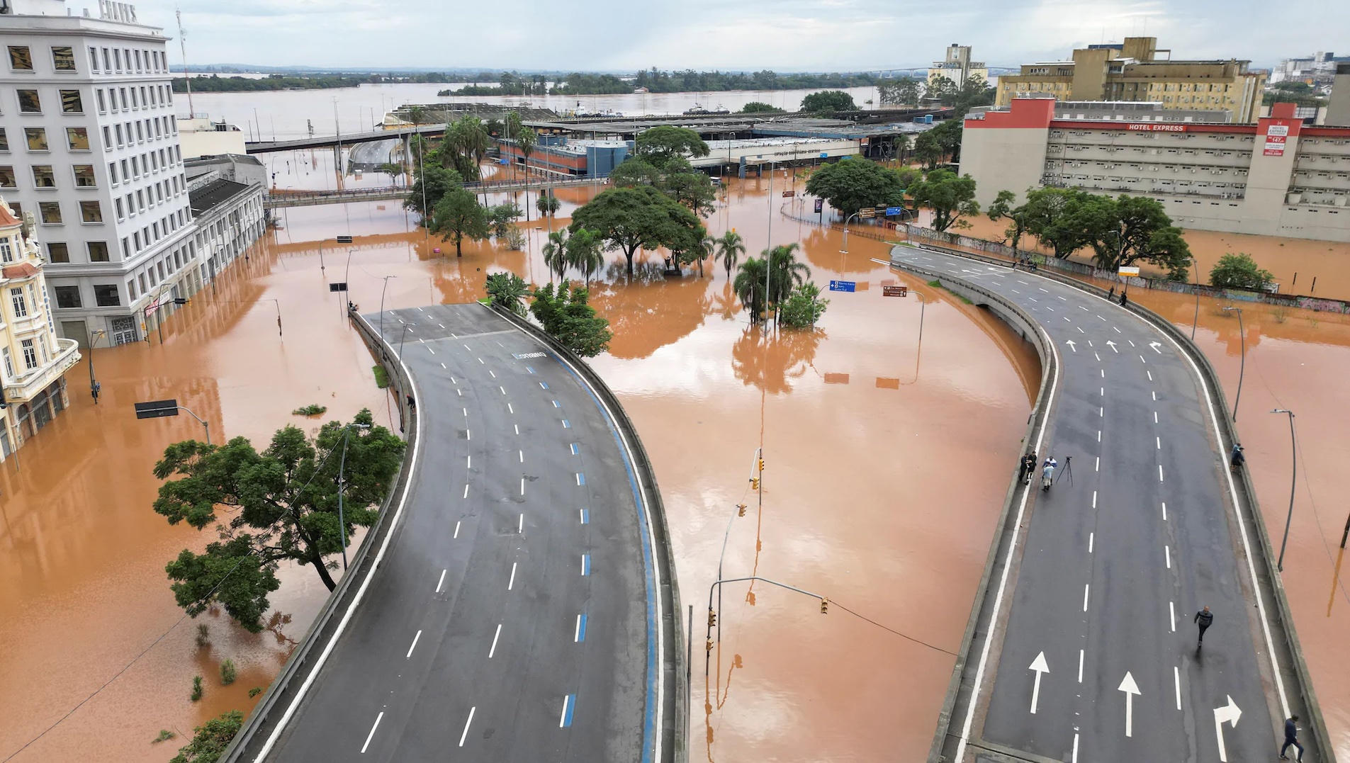 Mưa lớn tại bang Rio Grande do Sul trong gần 1 tuần đã ảnh hưởng đến 281 thành phố, khiến nước sông tràn bờ và thủ phủ Porto Alegre gần như ngập trong nước. Ảnh: REUTERS/Amanda Perobelli.