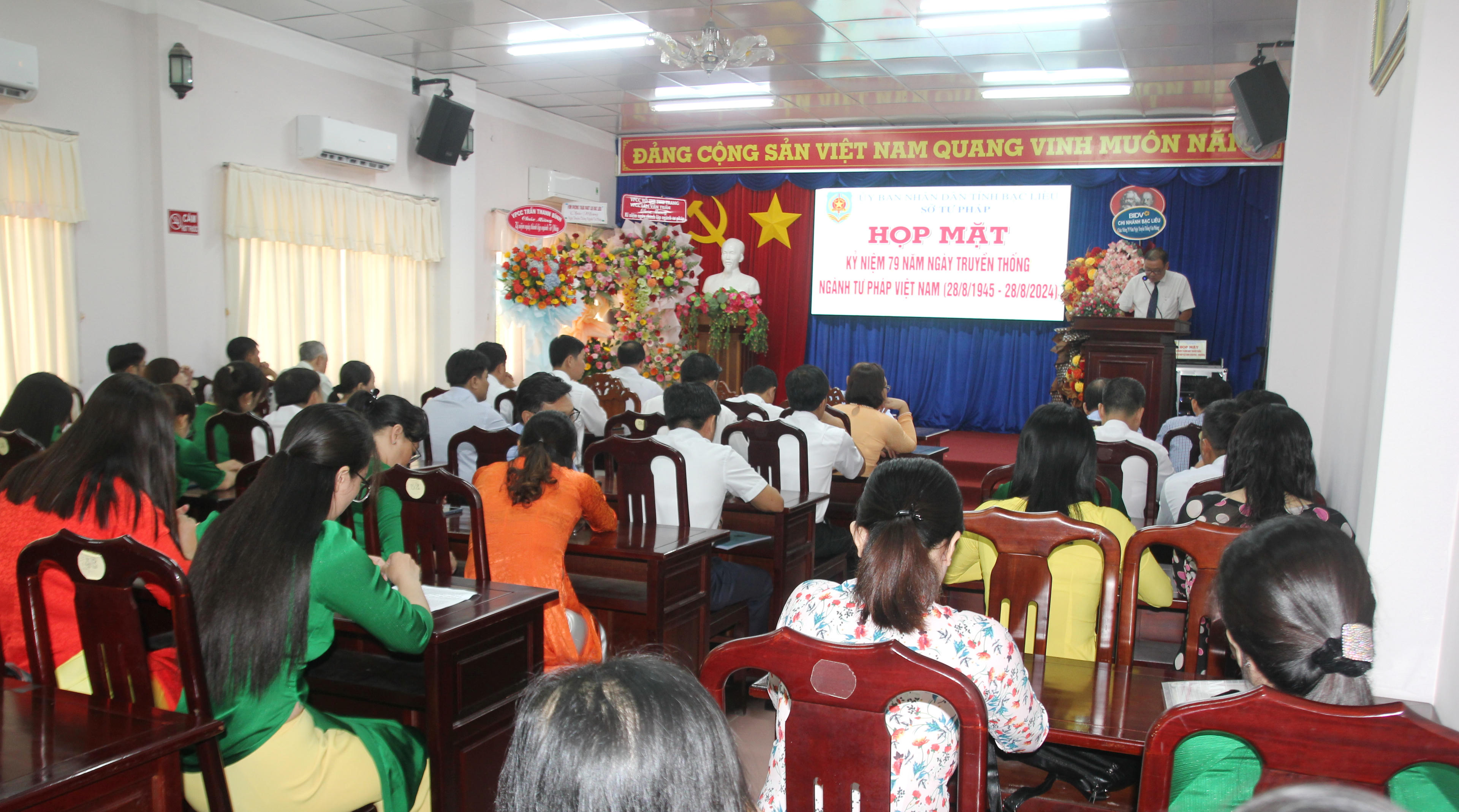 Phát biểu ôn lại truyền thống 79 năm Ngày thành lập Ngành Tư pháp, ông Vưu Nghị Bình - Giám đốc Sở Tư pháp tỉnh Bạc Liêu nói: “Ngày 28/8/1945, Chủ tịch Hồ Chí Minh đã ra Tuyên cáo trước quốc dân đồng bào và với toàn thế giới về việc thành lập Chính phủ lâm thời Việt Nam Dân chủ Cộng hòa; đó cũng chính là ngày đánh dấu sự ra đời của ngành Tư pháp Việt Nam. Đặc biệt, sự kiện chính trị trọng đại này không chỉ là niềm vinh dự to lớn của ngành Tư pháp mà còn cho thấy Đảng và Bác Hồ đặc biệt quan tâm coi trọng vai trò công tác tư pháp ngay từ khi lập nước.
