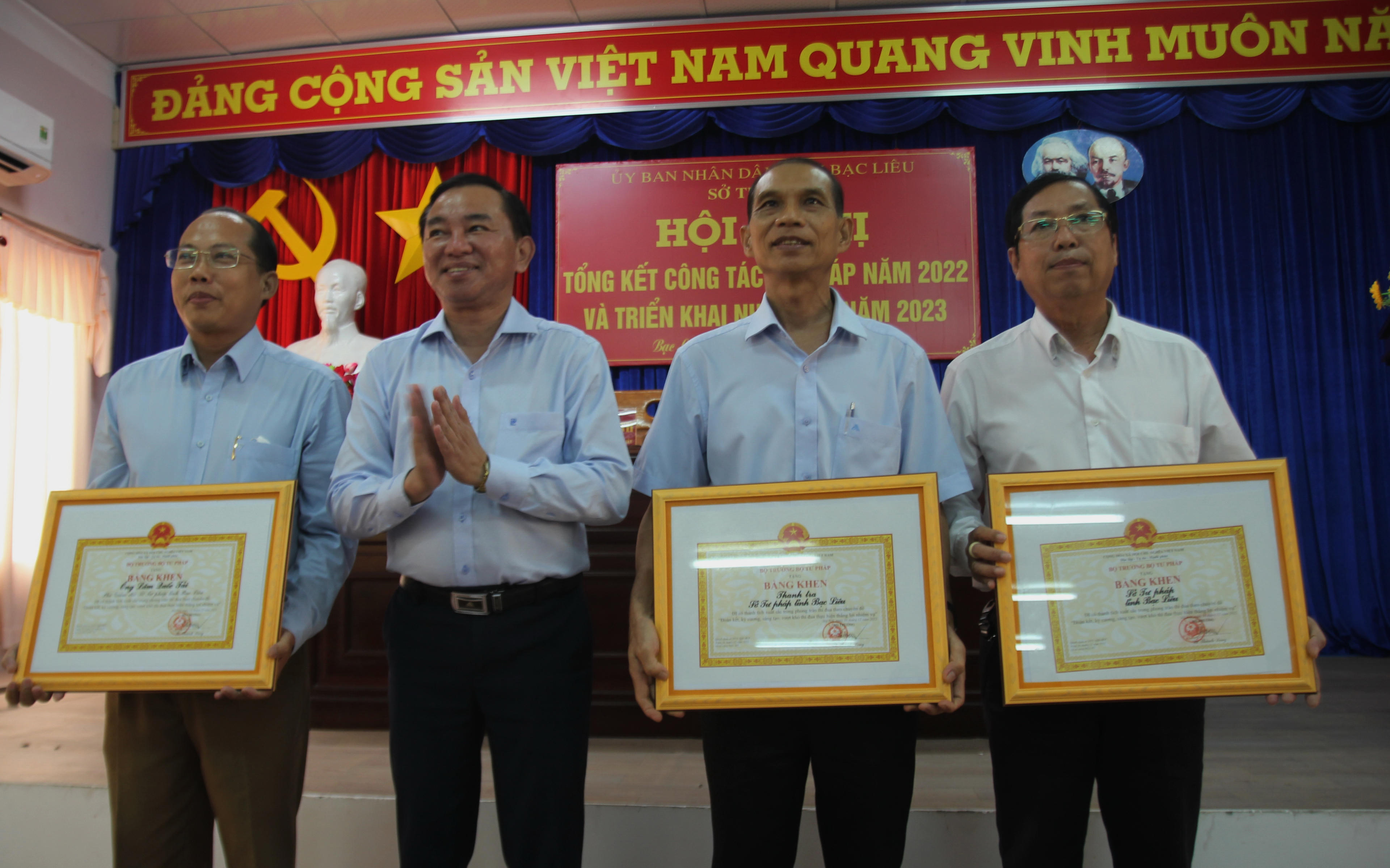 Nhân dịp này, tập thể Sở Tư pháp đã được Thủ tướng Chính phủ tặng Cờ thi đua vì có thành tích tiêu biểu xuất sắc dẫn đầu trong số các tập thể đạt tiêu chuẩn danh hiệu Cờ thi đua cấp tỉnh năm 2021; Bộ trưởng Bộ Tư pháp tặng Bằng khen cho 04 tập thể và 01 cá nhân có thành tích xuất sắc trong năm 2022; tặng Kỷ niệm chương “Vì sự nghiệp Tư pháp” cho 11 cá nhân có nhiều thành tích đóng góp cho sự nghiệp xây dựng và phát triển của Ngành Tư pháp; Chủ tịch UBND tỉnh Bạc Liêu tặng Bằng khen cho 09 tập thể và 22 cá nhân có thành tích xuất sắc trong năm 2022./.
