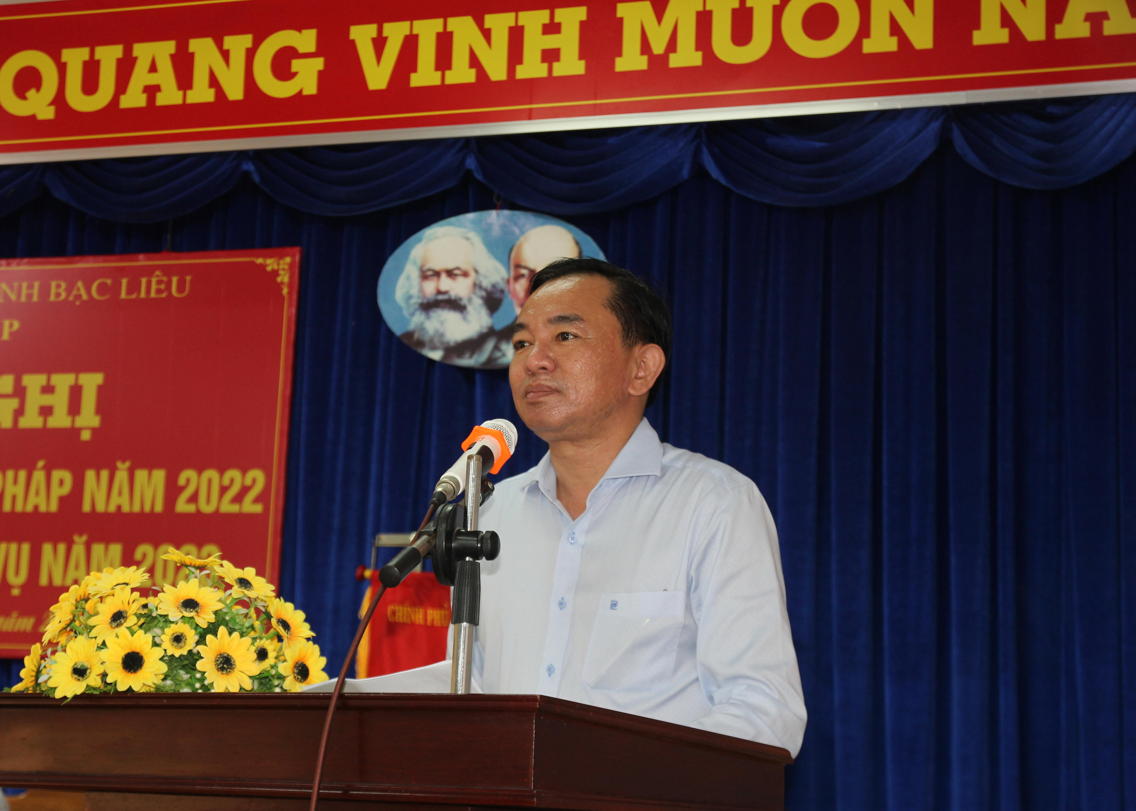 “Có thể nói, trong năm qua Ngành Tư pháp, Sở Tư pháp tỉnh đã nỗ lực, quyết tâm triển khai thực hiện và tham mưu cho UBND tỉnh thực hiện hoàn thành Chương trình công tác trọng tâm của Ngành tư pháp Bạc Liêu năm 2022, với 154 nhiệm vụ chủ yếu trên các lĩnh vực Tư pháp… công tác xây dựng và thẩm định văn bản quy phạm pháp luật được thực hiện kịp thời, chất lượng tiếp tục được nâng lên, góp phần phục vụ công tác quản lý nhà nước và phát triển kinh tế - xã hội của tỉnh; năm qua đã thực hiện thẩm định 63 văn bản quy phạm pháp luật của HĐND tỉnh và UBND tỉnh, hầu hết các văn bản được rút ngắn thời gian thẩm định định từ 15 ngày xuống còn 2 - 5 ngày; đã triển khai thực hiện công tác kiểm tra rà soát, hệ thống hóa văn bản quy phạm pháp luật đầy đủ, kịp thời, đúng quy định.
