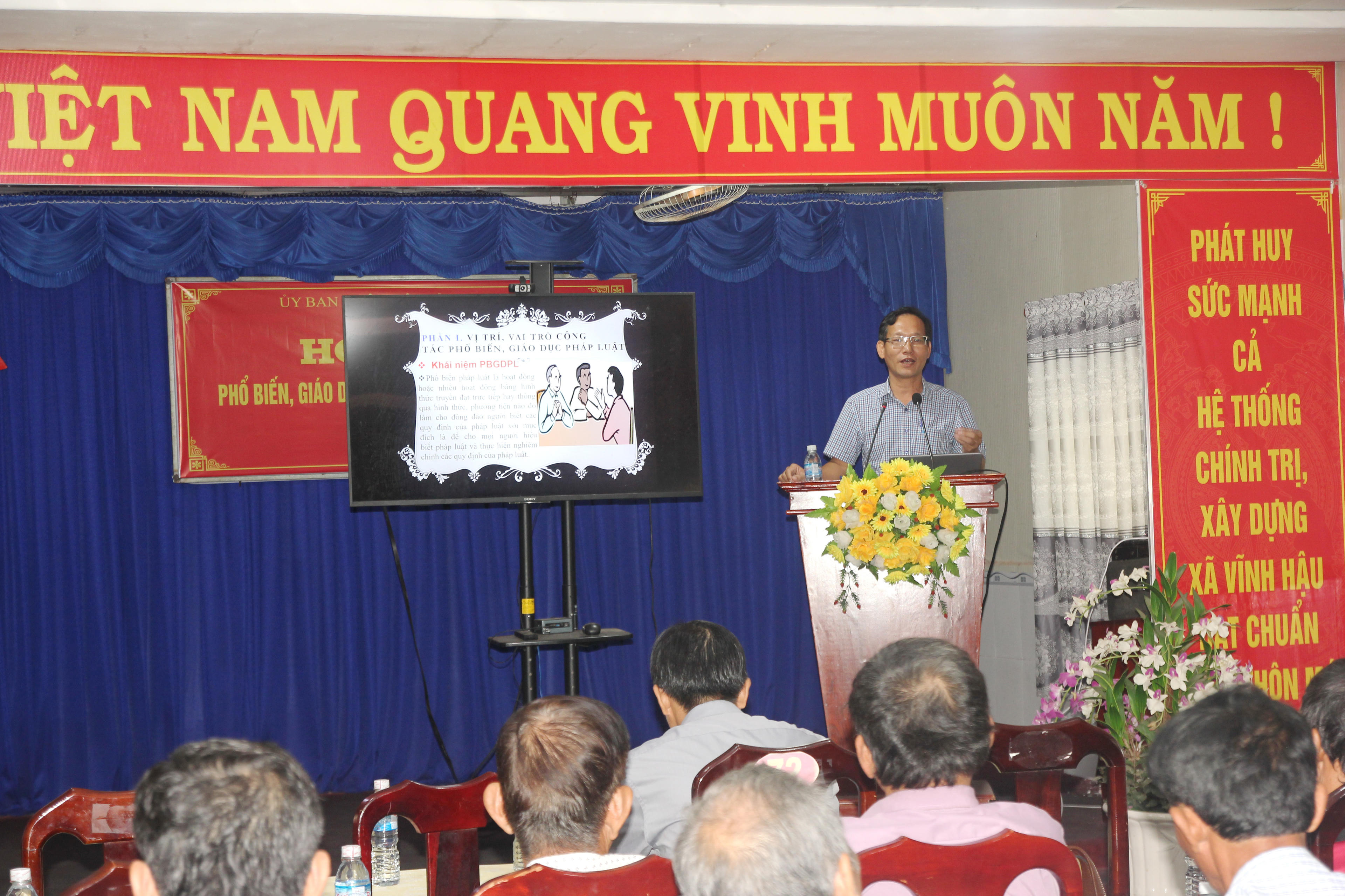 Báo cáo viên Đỗ Hồng Quang - Trưởng phòng Phổ biến, giáo dục pháp luật (Sở Tư pháp Bạc Liêu), triển khai một số quy định của Luật Phổ biến, giáo dục pháp luật về trách nhiệm của chính quyền các cấp ở địa phương như: HĐND cấp xã có trách nhiệm Quyết định các biện pháp nhằm nâng cao hiệu quả công tác phổ biến, giáo dục pháp luật. Đồng thời, phân bổ dự toán ngân sách địa phương cho công tác phổ biến, giáo dục pháp luật; Giám sát việc thực hiện pháp luật về phổ biến, giáo dục pháp luật.