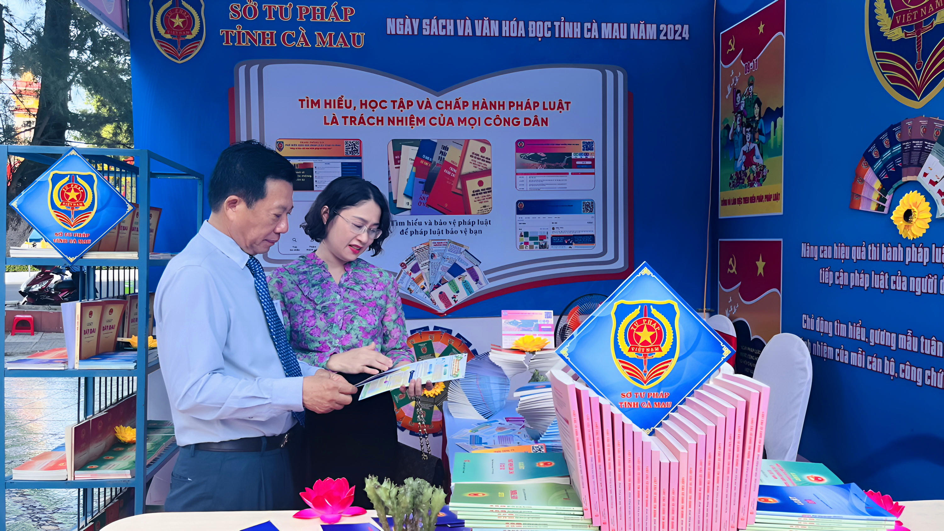 (PLVN) - Nhằm tuyên truyền, giới thiệu, phổ biến pháp luật, Sở Tư pháp tỉnh Cà Mau đã tham gia trưng bày tại Ngày Sách và Văn hóa đọc tỉnh Cà Mau gần 500 sách pháp luật được Quốc hội ban hành; tờ gấp pháp luật; infographic và các tài liệu phổ biến, giáo dục pháp luật…