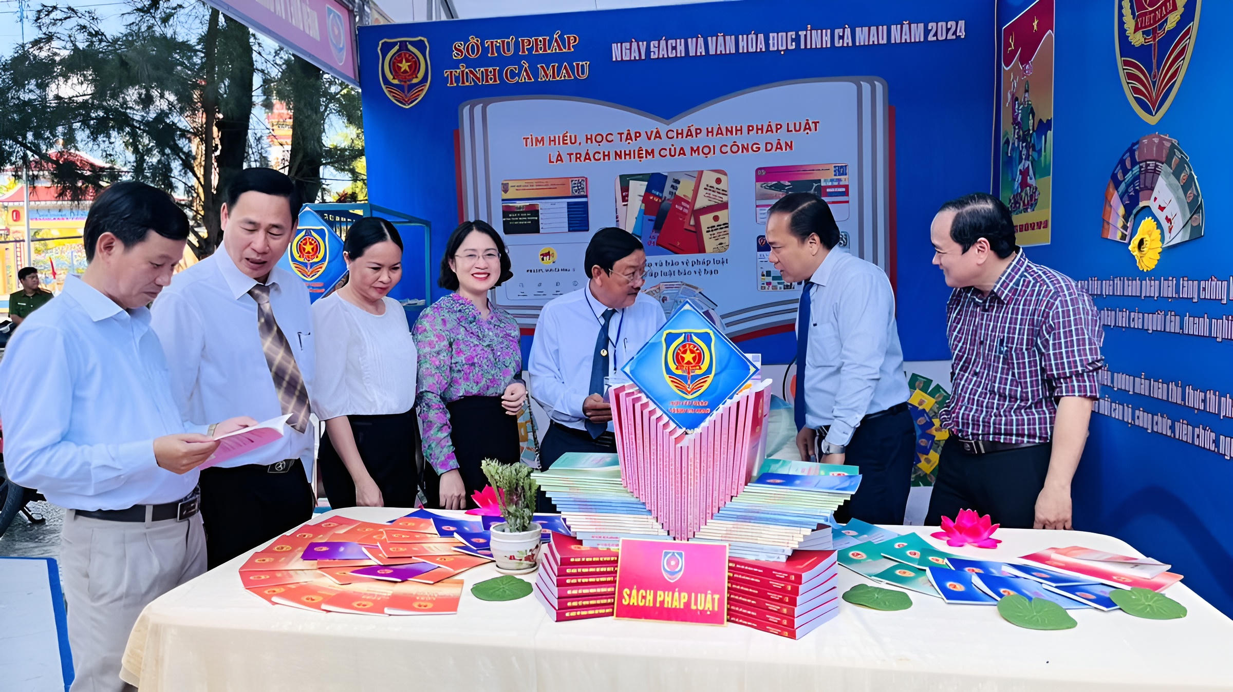 Lãnh đạo Sở, ngành tỉnh Cà Mau tham quan gian hàng trưng bày sách pháp luật của Sở Tư pháp. |