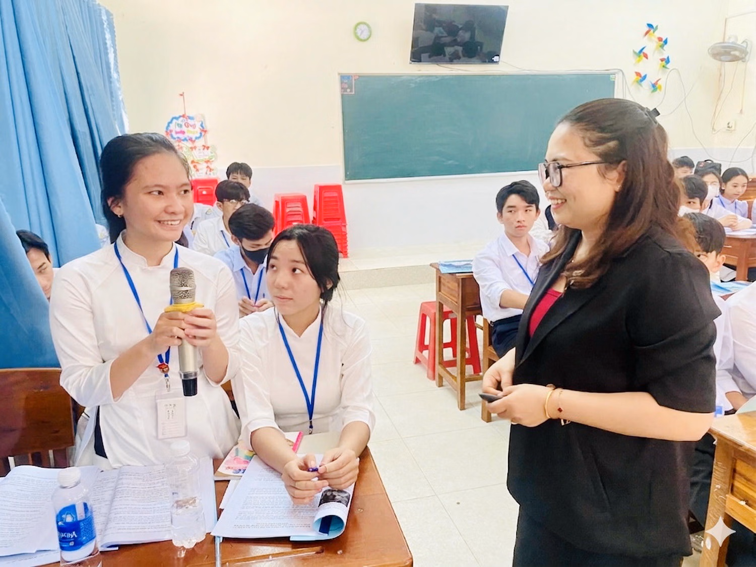 Nhiều học sinh khác cũng tham gia phát biểu sôi nổi, trao đổi về quyền và nghĩa vụ của bản thân; khả năng nhận diện các hành vi bạo lực, nhất là trên không gian mạng; cùng các quy định pháp luật liên quan đến quyền, bổn phận của trẻ em và việc xử lý người chưa thành niên vi phạm pháp luật.