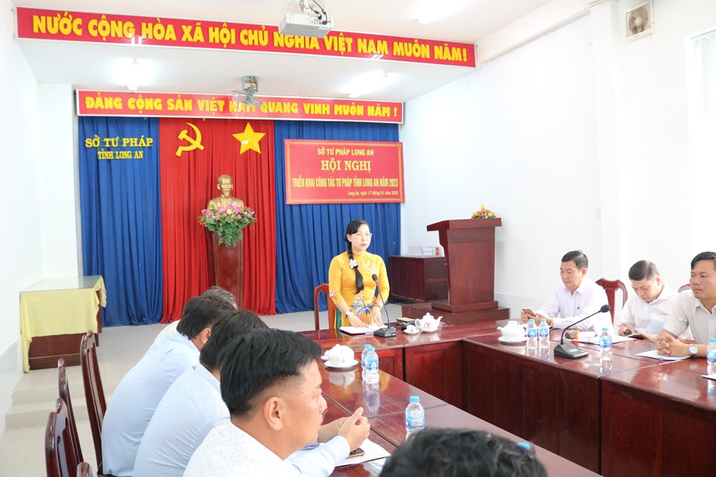 Năm 2022, Sở Tư pháp tỉnh Long An chỉ đạo, lãnh đạo triển khai thực hiện hoàn thành các nội dung, nhiệm vụ đề ra, đảm bảo chất lượng, đúng tiến độ các nội dung theo kế hoạch đề ra. Đơn vị đã cụ thể hóa với 78 đầu việc cụ thể; tham mưu thực hiện hoàn thành 169 nhiệm vụ phát sinh do Bộ Tư pháp, Tỉnh ủy, UBND tỉnh Long An giao.