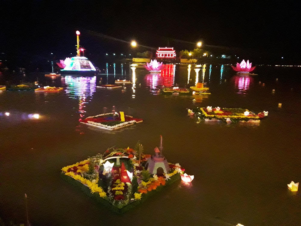 Tối cùng ngày, Đoàn công tác đã tham gia lễ thả đèn hoa đăng tri ân các anh hùng liệt sỹ trên sông Thạch Hãn.