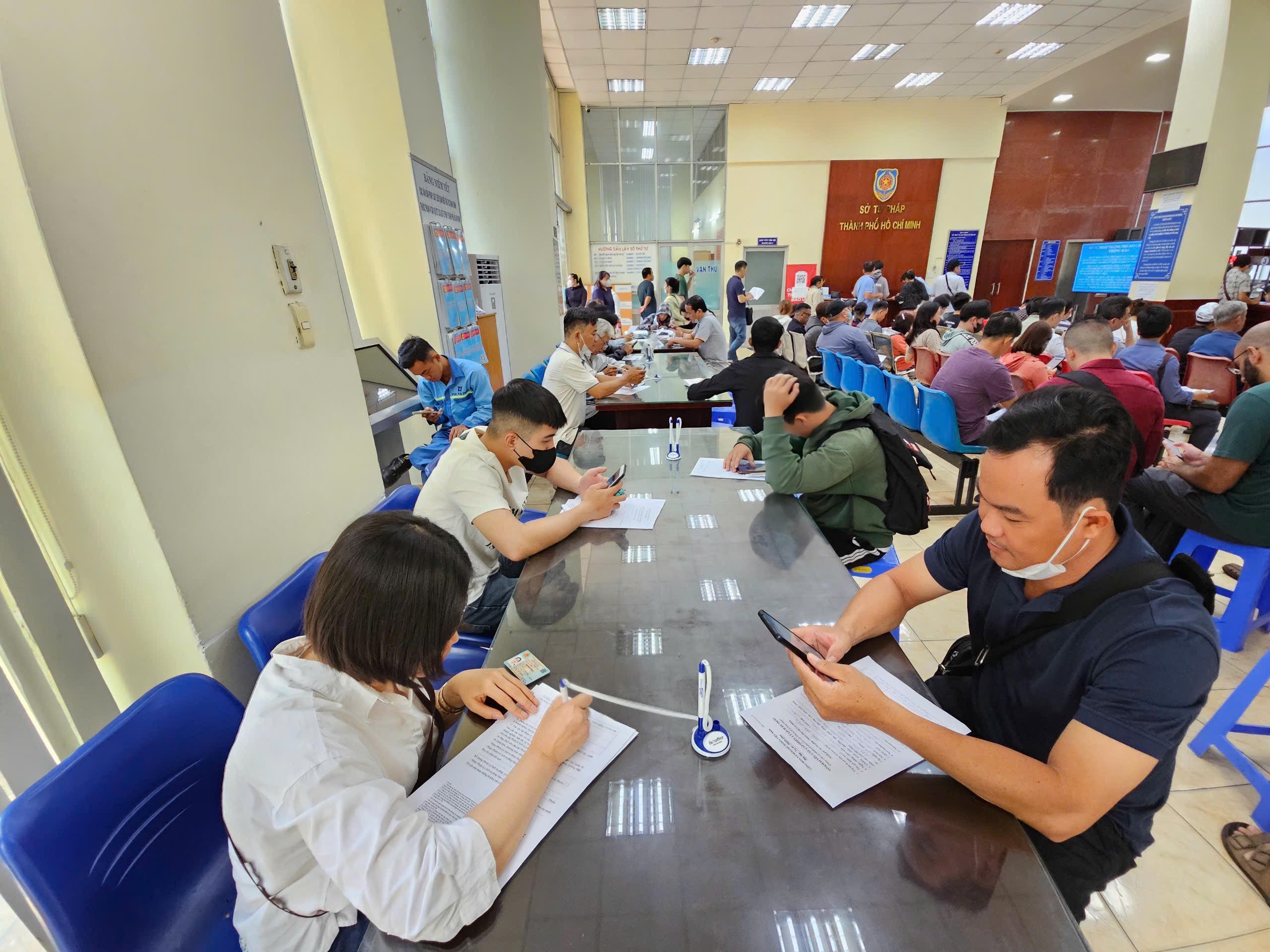 Người dân đang thực hiện dịch vụ công tại bộ phận một cửa của Sở Tư pháp TP.HCM. Ảnh: Hoàng Thịnh |