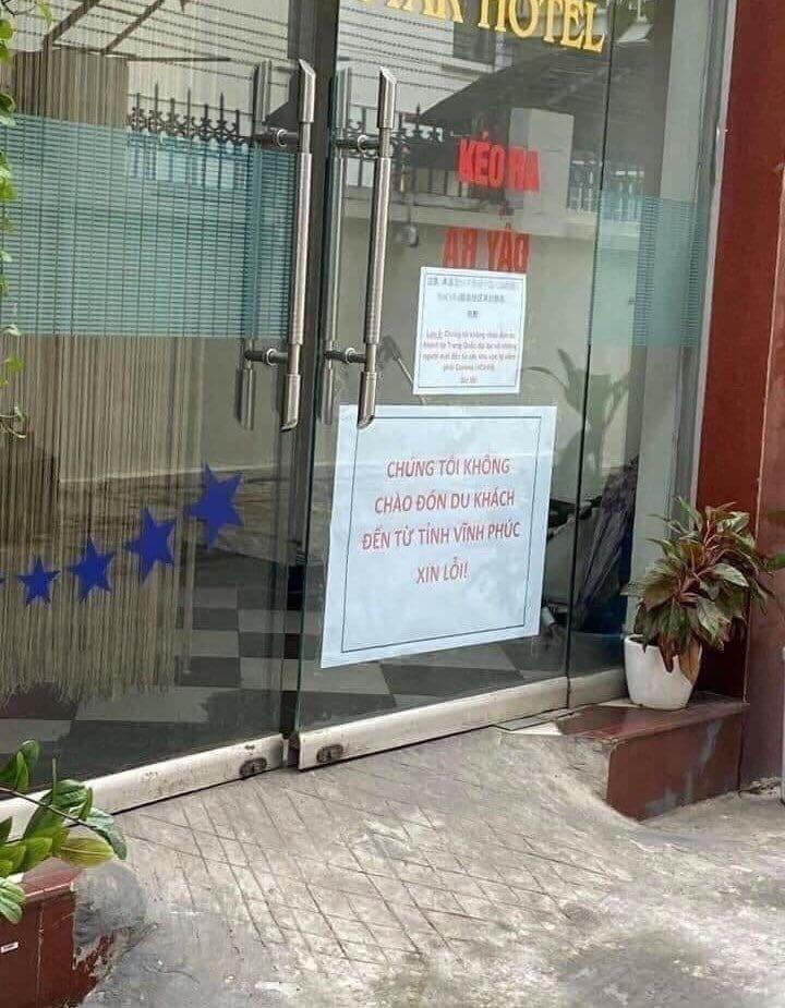 Cách Vĩnh Phúc 40 km, một khách sạn tại đường Trần Duy Hưng (quận Cầu Giấy, Hà Nội) đã trưng ra tấm bảng không nhận khách Vĩnh Phúc.