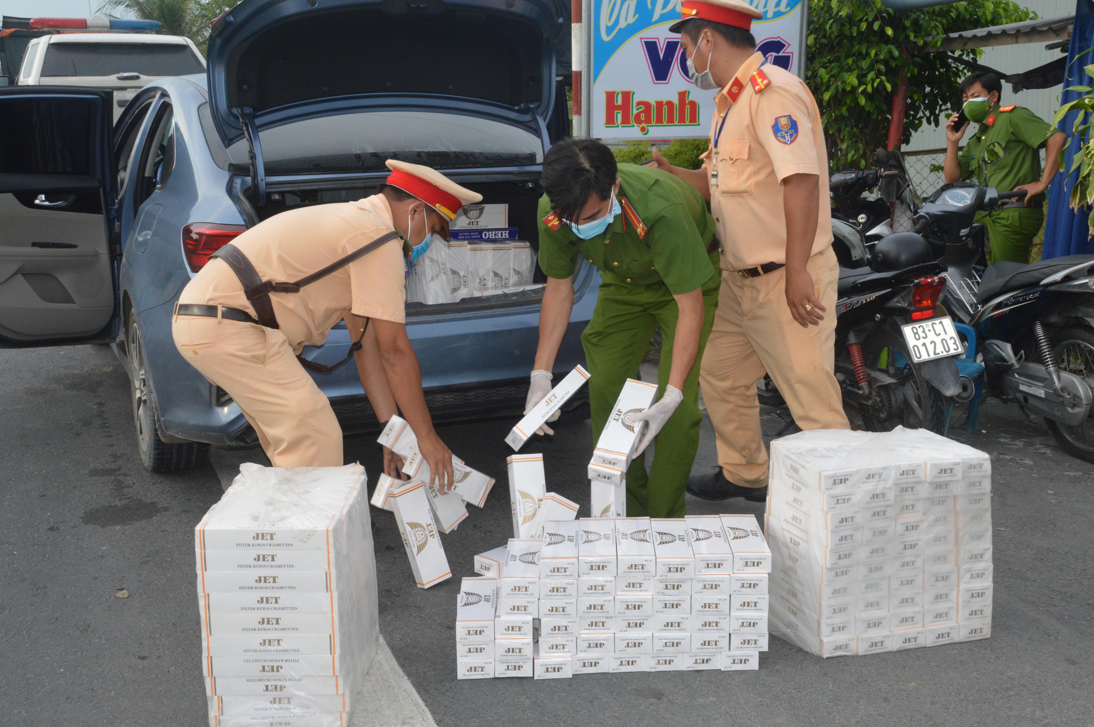 (PLVN) - Phòng cảnh sát giao thông Công an tỉnh Sóc Trăng vừa phát hiện, bắt giữ vụ vận chuyển gần 800 cây thuốc lá ngoại trái phép trong lúc tuần tra kiểm soát và phòng, chống dịch COVID-19.