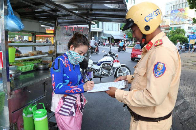 Lực lượng CSGT Công an tỉnh Sóc Trăng tuyên truyền, nhắc nhở và cho những người dân ký cam kết thực hiện các quy định của pháp luật, về công tác đảm bảo trật tự an toàn giao thông, trật tự công cộng. |