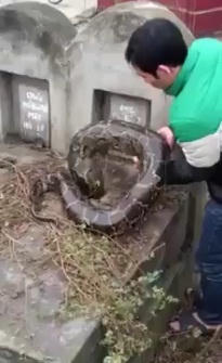 Sốc với hình ảnh trăn khổng lồ được cứu từ ngôi mộ cũ