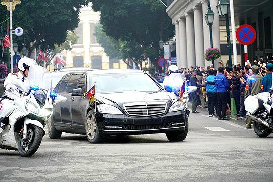 (PLVN) - Sáng nay (26/2), Chủ tịch Triều Tiên Kim Jong Un đã tới Việt Nam để dự Hội nghị thượng đỉnh với Tổng thống Mỹ Donald Trump trên đoàn tàu bọc thép chống đạn dành riêng cho các chuyến công du của ông. Tiếp sau đó, ông đã di chuyển bằng xe hơi về Hà Nội.