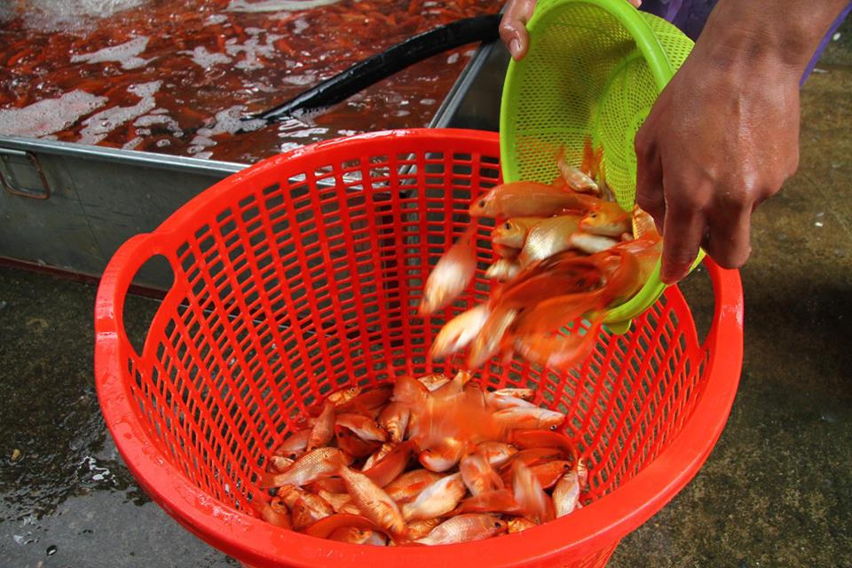 Cá được phân loại sau đó được các tiểu thương vẩn chuyển đi khắp các khu vực nội thành Hà Nội.