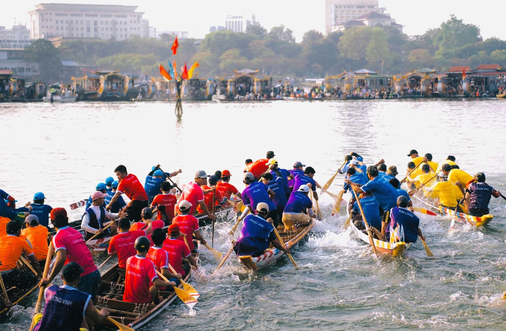 Giải đua ghe năm nay có sự tham gia của các vận động viên nam, nữ đến từ phường Kim Long, phường Thủy Vân, phường Gia Hội, phường Hương Vinh, phường An Đông, phường Phú Hậu, xã Hương Phong, xã Hải Dương của TP Huế và một đội khách mời là đơn vị xã Phú An (huyện Phú Vang).