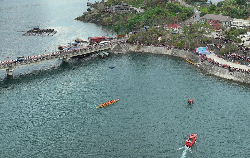 Lễ hội đua thuyền được tổ chức tại khu vực cầu Pá Uôn, thuộc thị trấn Mường Giàng, huyện Quỳnh Nhai, tỉnh Sơn La. (Ảnh: CTV) |