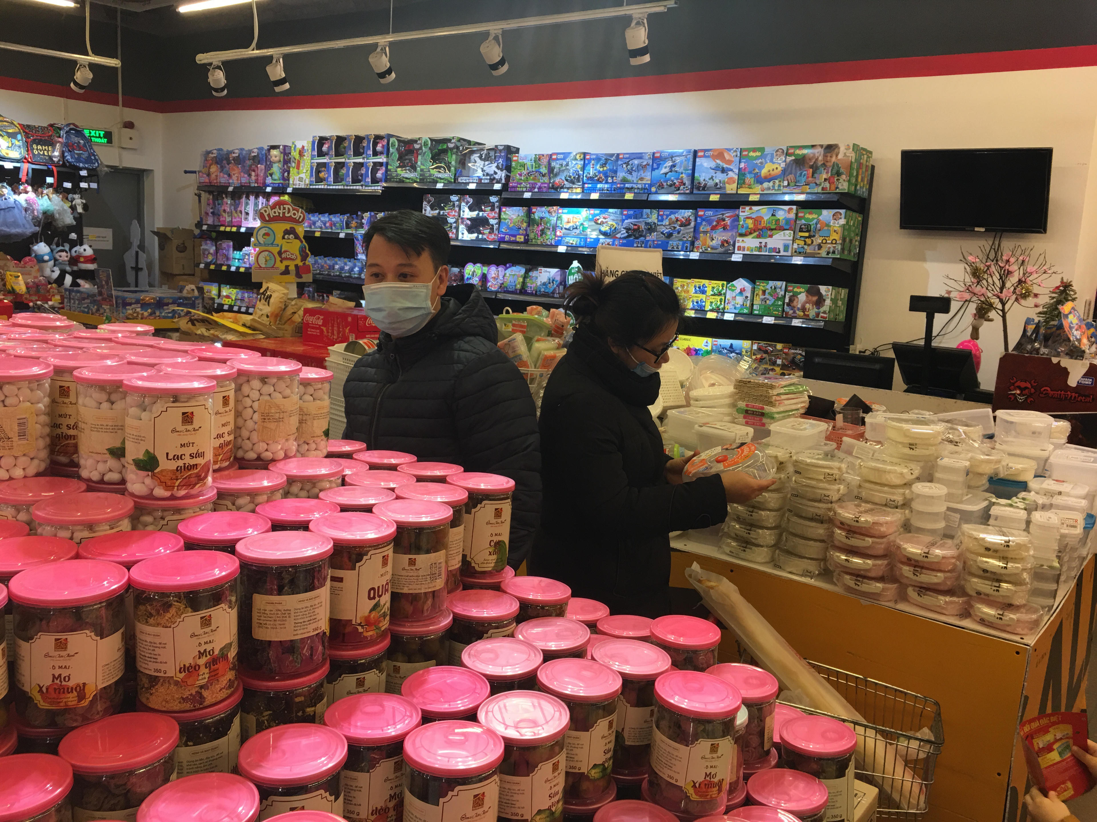 Theo ghi nhận của PV, đến thời điểm này, hầu hết các siêu thị như Vinmart, Big C, Co.op Mart hay các trung tâm thương mại, cửa hàng bán lẻ, gian hàng trong chợ truyền thống đã bày bán đa dạng các loại bánh, kẹo chuẩn bị cho dịp Tết Nguyên đán 2021. Theo đó, số lượng bánh, kẹo hàng Việt Nam chuẩn bị cho Tết năm nay tại các siêu thị chiếm hơn 90% các kệ hàng với nhiều phân khúc giá.