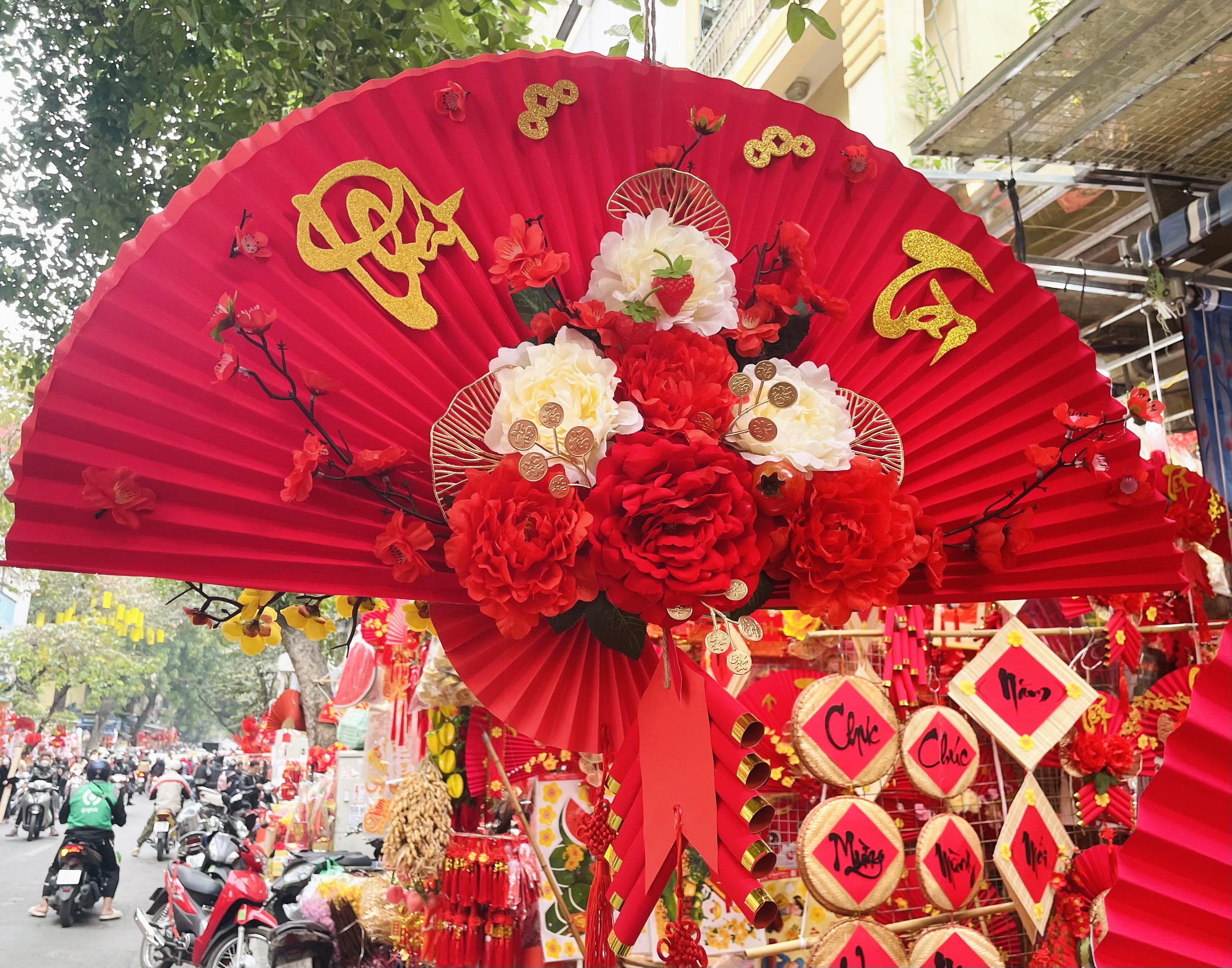 Những chiếc quạt giấy dùng trang trí với nhiều mẫu mã, kích cỡ và giá thành khác nhau. Chủ một cửa hàng trên phố Hàng Mã cho biết "Quạt nhỏ có giá 300.000 đồng/chiếc, quạt lớn 350.000 đồng chiếc. Đây là những mặt hàng bán chạy, được nhiều người lựa chọn".