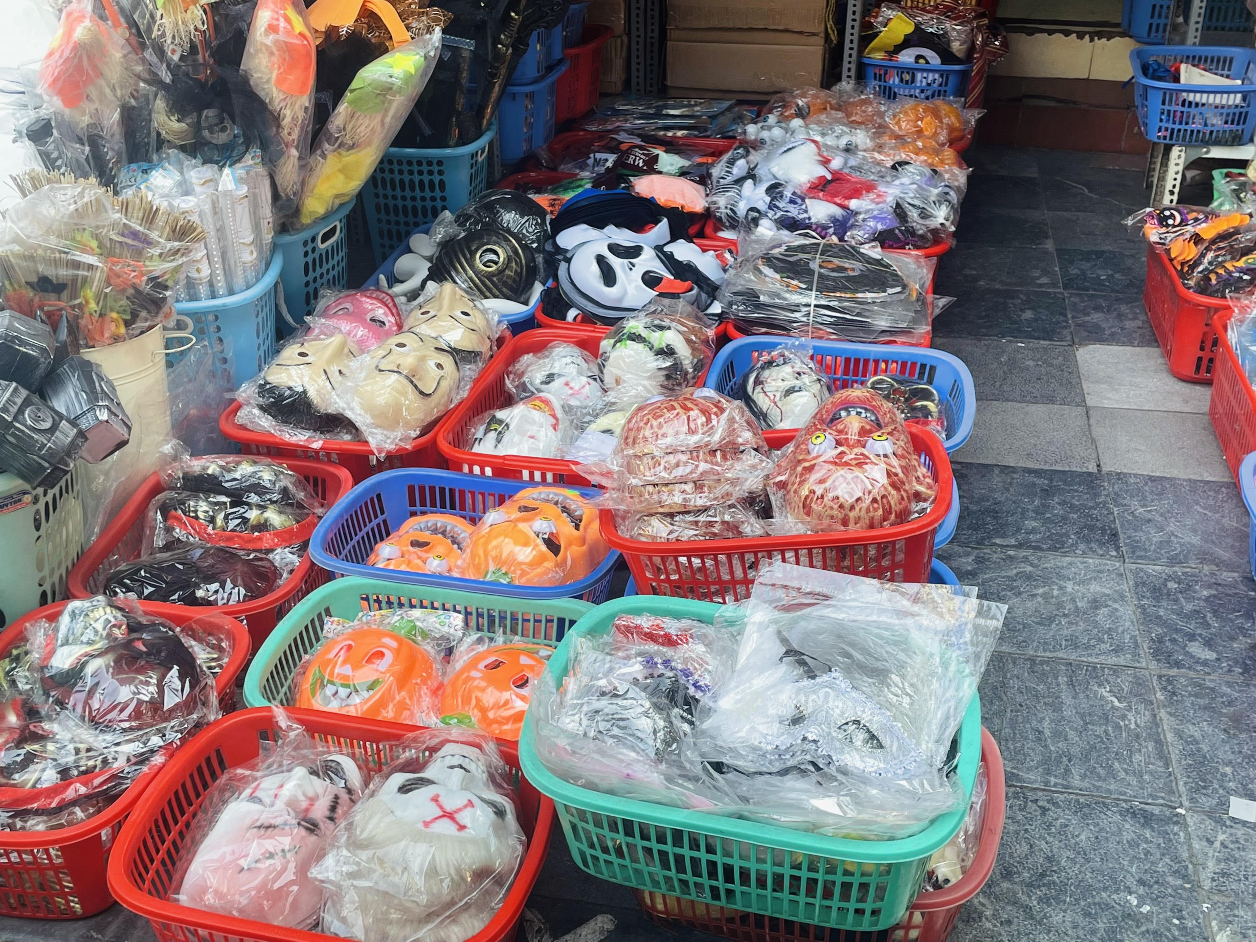 Các mặt hàng đồ chơi, mặt nạ cũng đa dạng không kém.