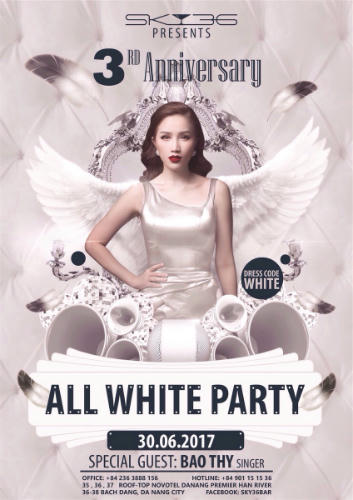 Với chủ đề “All White Party” hay còn gọi là “dạ tiệc trắng”, lần đầu tiên du khách đến với SKY36 được trải nghiệm một không gian trang trí hoàn toàn theo gam màu trắng. Du khách được khuyến khích mặc trang phục trắng và còn được tặng thêm một chiếc mũ trắng để đồng bộ cùng sắc màu trong buổi tiệc. Sự kiện diễn ra trong khuôn khổ các hoạt động kỷ niệm 3 năm SKY36 đi vào hoạt động.