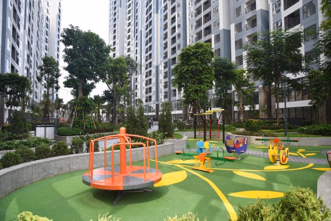 Khu vược sân chơi trẻ em đã lên hình với các trang thiết bị cao cấp, đảm bảo an toàn tối đa, hứa hẹn những giờ phút vui chơi, khám phá thú vị cho con trẻ.