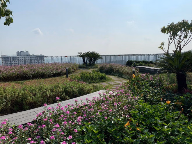 Mới nhìn thoáng qua, ai cũng nghĩ đây là một công viên trên mặt đất. Nhưng thực tế, nó lại là khu vườn giữa lưng chừng trời với đường dạo bộ và những khóm hoa đã đua sắc màu. Khu vườn hứa hẹn sẽ đem lại những phút giây thăng hoa tuyệt vời cho cộng đồng cư dân Imperia Sky Garden.