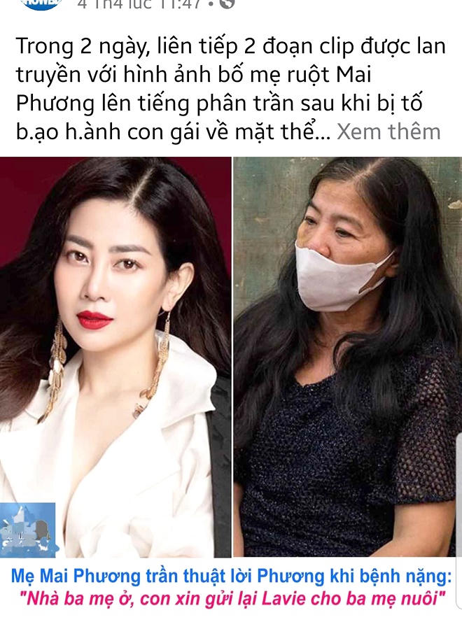 Đầu tiên, những clip quay cảnh mẹ Mai Phương chửi bới cô và bạn bè ở bệnh viện, ở nhà xuất hiện trên mạng xã hội. Hình ảnh thể hiện trong các clip này cho thấy sự bạo hành tinh thần của mẹ Mai Phương đối với cô. Từ đó, phản ứng giận dữ lan rộng trên mạng xã hội với nhiều lời “ném đá” dành cho cha mẹ Mai Phương và gia đình cô.