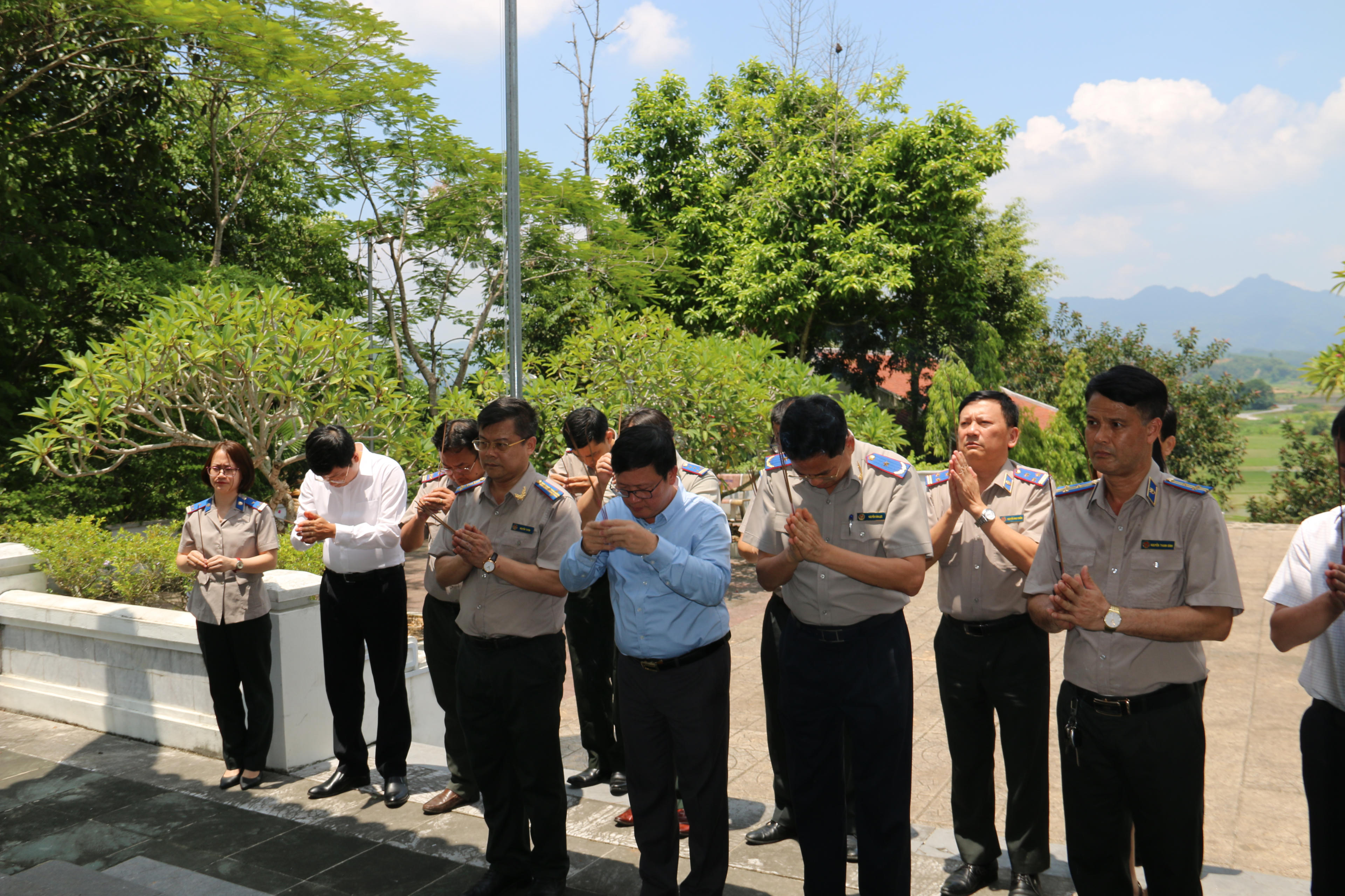 Thứ trưởng Bộ Tư pháp Mai Lương Khôi, Phó Tổng cục trưởng Tổng cục THADS Nguyễn Văn Lực và Đoàn công tác dâng hương tại Khu di tích lịch sử Bộ Tư pháp. Ảnh Ngọc Phúc |