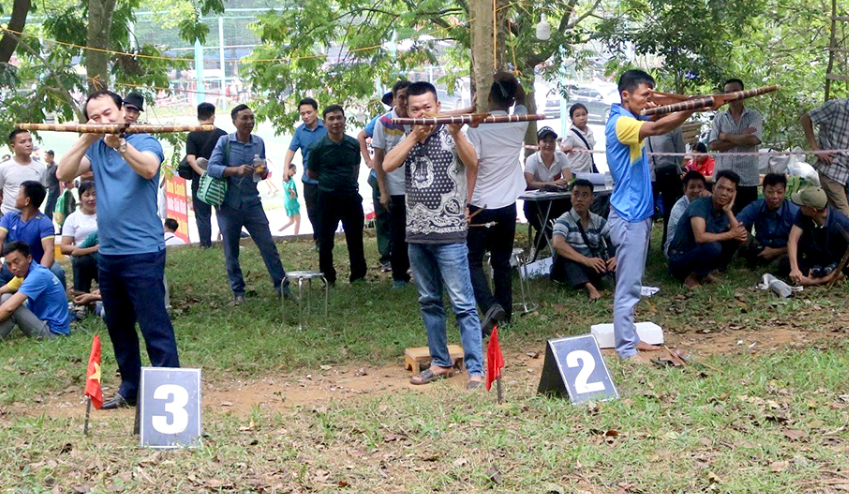 Giải thể thao quần chúng có 4 môn thi đấu gồm: Tung còn, Bắn nỏ, Cờ tướng và Đẩy gậy |