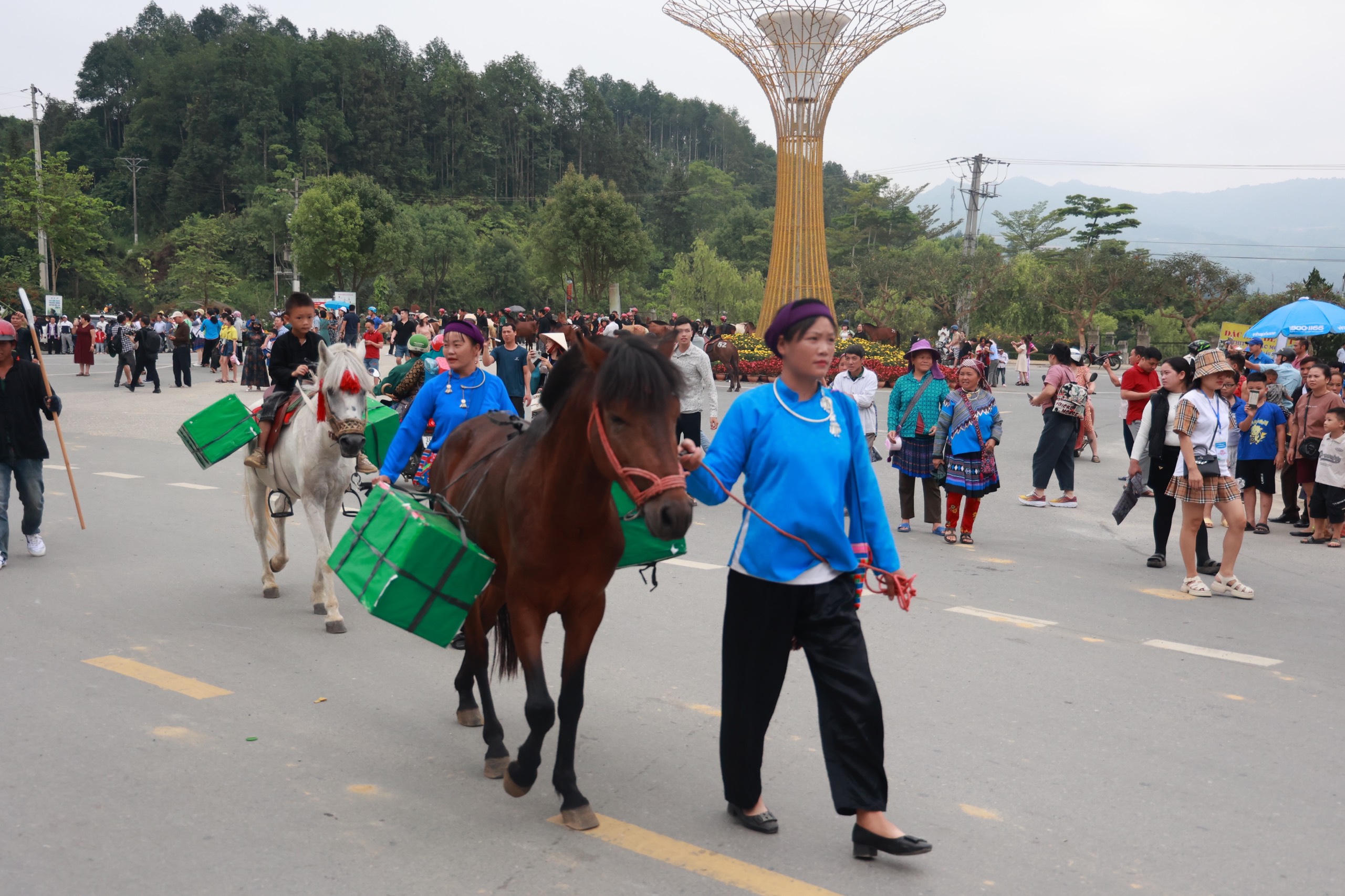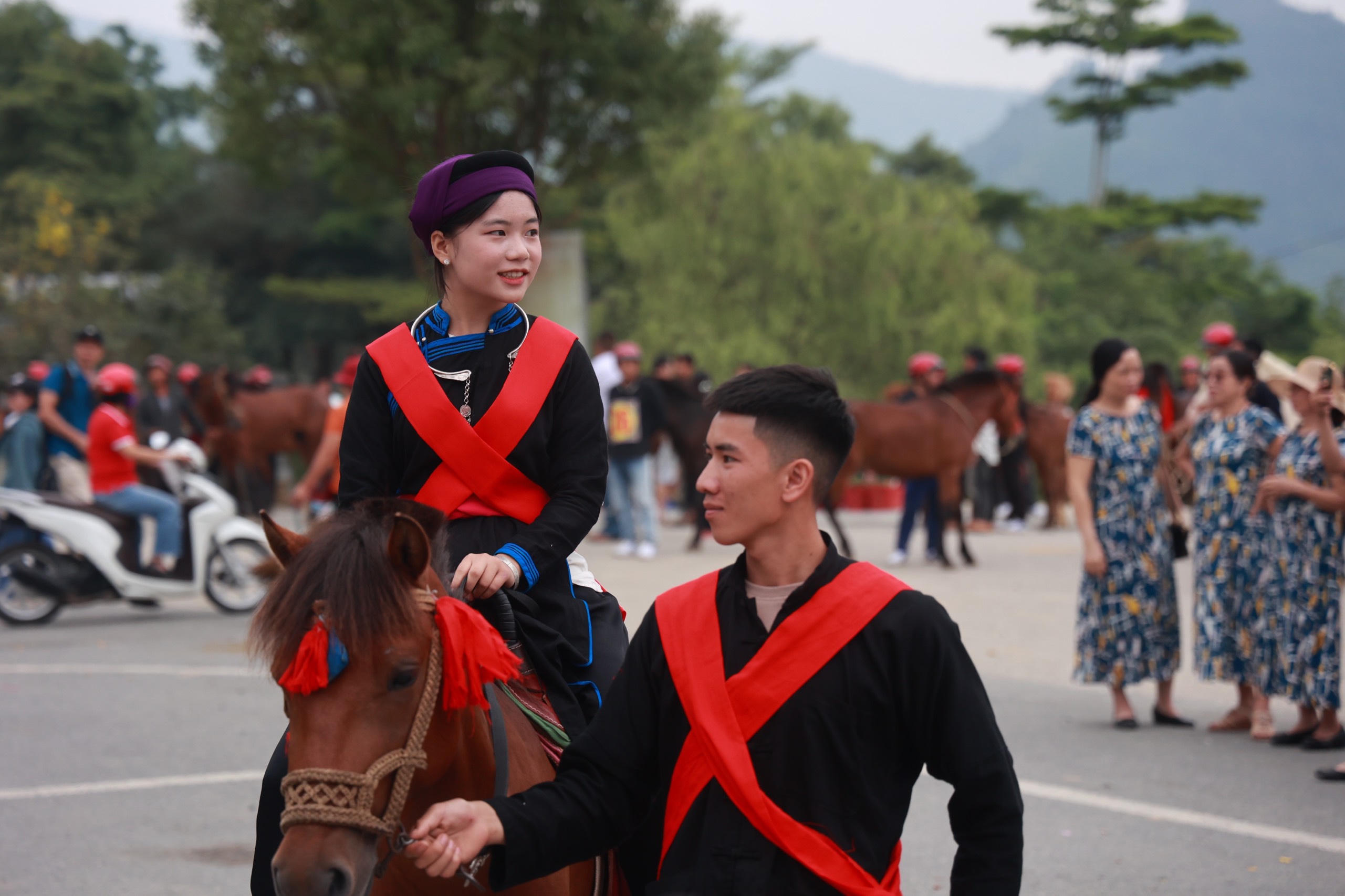 Trước giờ khai mạc Giải đua ngựa truyền thống huyện Bắc Hà lần thứ 17, du khách được tìm hiểu về truyền thống Lễ hội đua ngựa Bắc Hà qua màn diễu diễn đường phố.