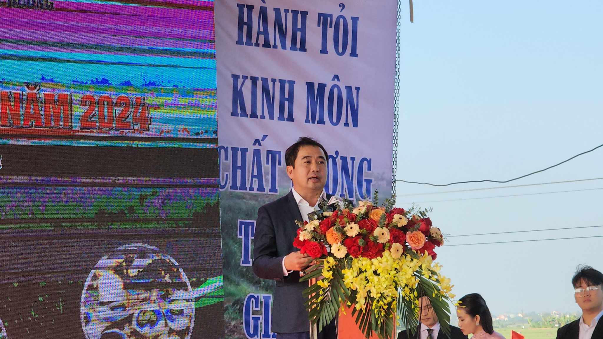 Phát biểu tại lễ hội, ông Lê Minh Hoan, Bộ trưởng Nông nghiệp và Phát triển nông thôn, bày tỏ sự vui mừng, phấn khởi trước những thành quả mà ngành nông nghiệp tỉnh Hải Dương và thị xã Kinh Môn thu được từ phát triển cây hành, tỏi.