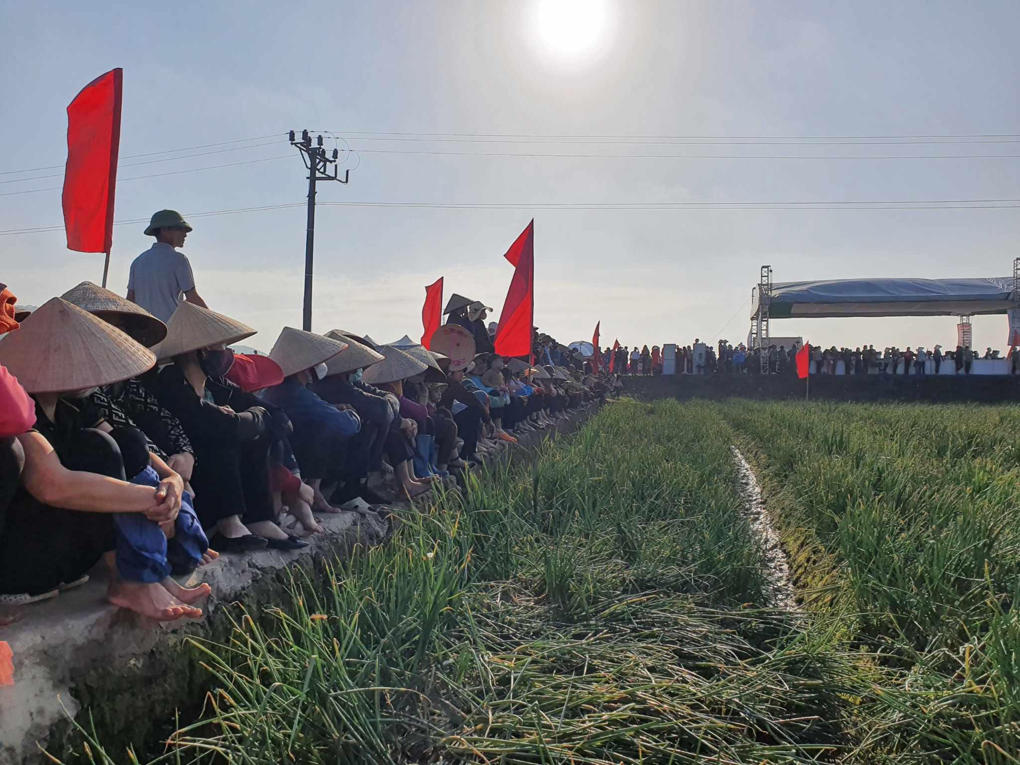 Mỗi thôn trong xã Hiệp Hoà sẽ thành lập đội tuyển từng thôn để tham gia hội thi thu hoạch hành, tỏi. |