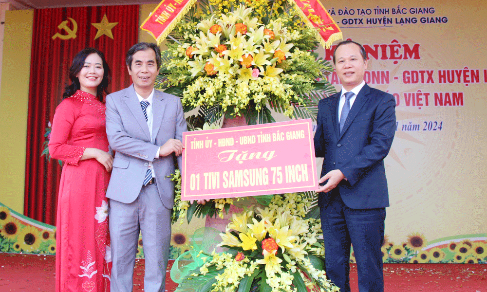 Quyền Chủ tịch UBND tỉnh Bắc Giang cùng đại diện các lãnh đạo Sở GD&ĐT, Sở Lao động - Thương binh và Xã hội, UBND huyện Lạng Giang cũng đã đến tham dự và chúc mừng lễ kỷ niệm Ngày Nhà giáo Việt Nam 20/11 và kỷ niệm 30 năm thành lập Trung tâm Giáo dục nghề nghiệp - Giáo dục thường xuyên huyện Lạng Giang (Bắc Giang).