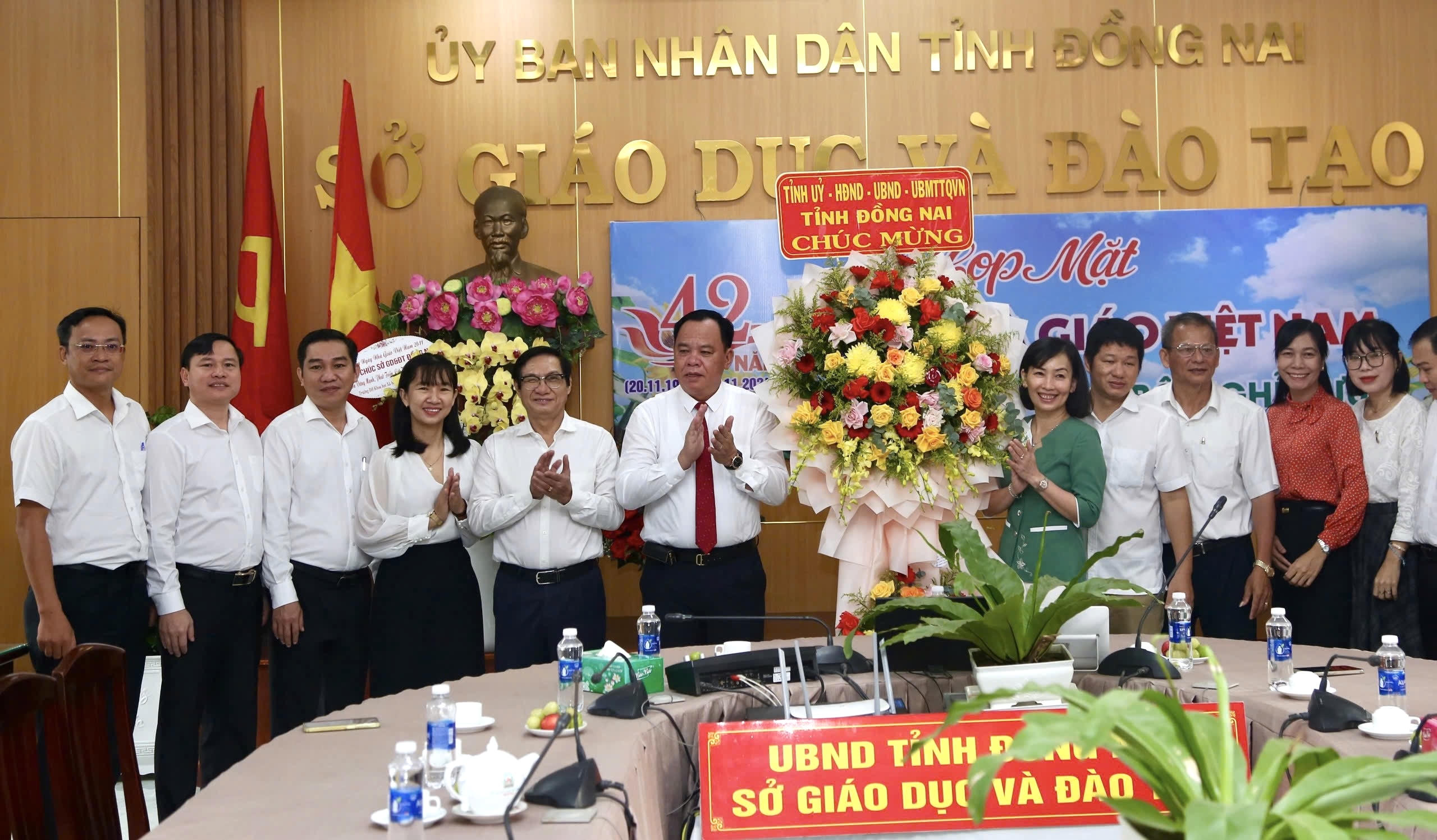 Tại Đồng Nai, sáng 20/11, lãnh đạo tỉnh đã đến thăm và chúc mừng Sở GD-ĐT nhân kỷ niệm 42 năm Ngày Nhà giáo Việt Nam 20/11. Thay mặt lãnh đạo tỉnh, Chủ tịch UBND tỉnh Đồng Nai Võ Tấn Đức gửi lời chúc tốt đẹp nhất đến toàn thể cán bộ, công chức, viên chức và người lao động ngành Giáo dục và Đào tạo Đồng Nai.