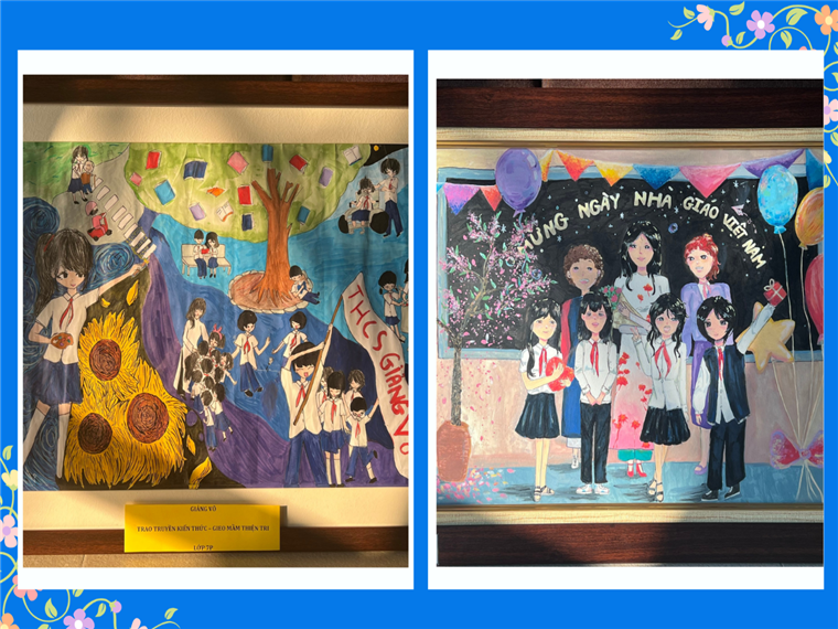 Không kém phần ấn tượng là cuộc thi vẽ tranh với chủ đề "Người thầy trong trái tim em". Các bức tranh thể hiện sự sáng tạo và cảm nhận sâu sắc của học sinh về hình ảnh người thầy, từ ánh mắt hiền từ đến bàn tay cầm phấn đầy kiên nhẫn. Từng nét vẽ như nói lên tình cảm yêu thương và biết ơn vô hạn của học sinh đối với thầy cô.
