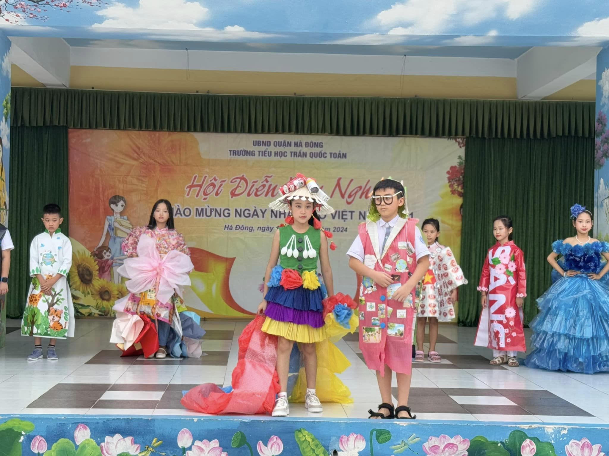 Học sinh trường Trường Tiểu học Trần Quốc Toản, Hà Đông tham gia hội diễn văn nghệ với chủ đề “Thời trang tái chế”. (Ảnh: Nhà trường) |
