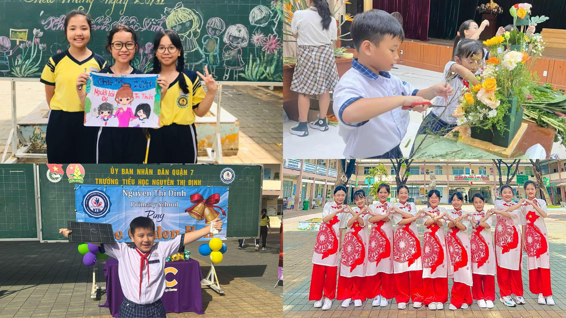 Trên địa bàn TP HCM, Trường Tiểu học Nguyễn Thị Định cũng đã tổ chức nhiều hoạt động thiết thực như: làm thiệp chúc mừng, vẽ tranh, và cắm hoa – những hoạt động vừa mang tính sáng tạo, vừa thể hiện lòng biết ơn sâu sắc đối với thầy cô.