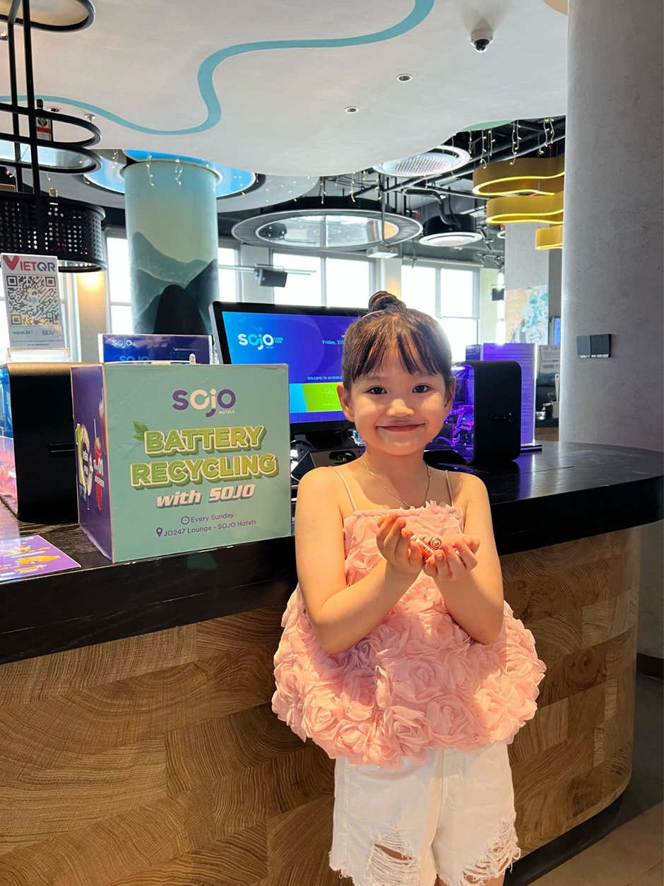 Thêm vào đó, SOJO Hotels còn triển khai chương trình JO Green - Nhập hội gom pin, thu hồi pin đã qua sử dụng để nhận lấy 01 cốc nước mát lành trong menu đồ uống của khách sạn. Hoạt động này diễn ra mỗi chủ nhật hàng tuần và rất được người dân địa phương hưởng ứng.