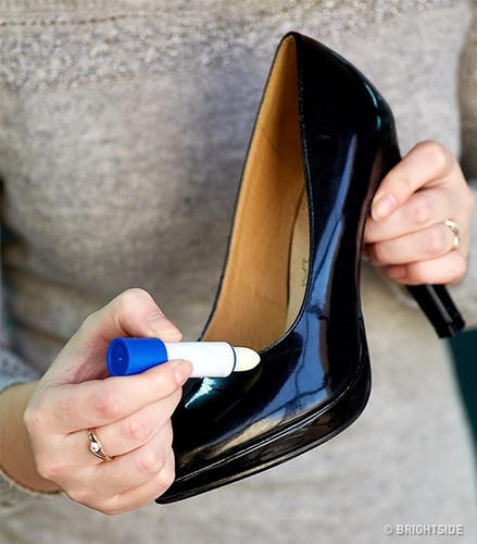 Những đôi giày mới thường khiến chị em bị đau chân, phồng rộp. Để hạn chế bị phồng rộp da chân, bạn nên dùng son dưỡng ở chỗ bàn chân cọ xát mạnh với giày dép rồi xỏ chân vào. Bạn sẽ không cảm thấy khó chịu nữa.